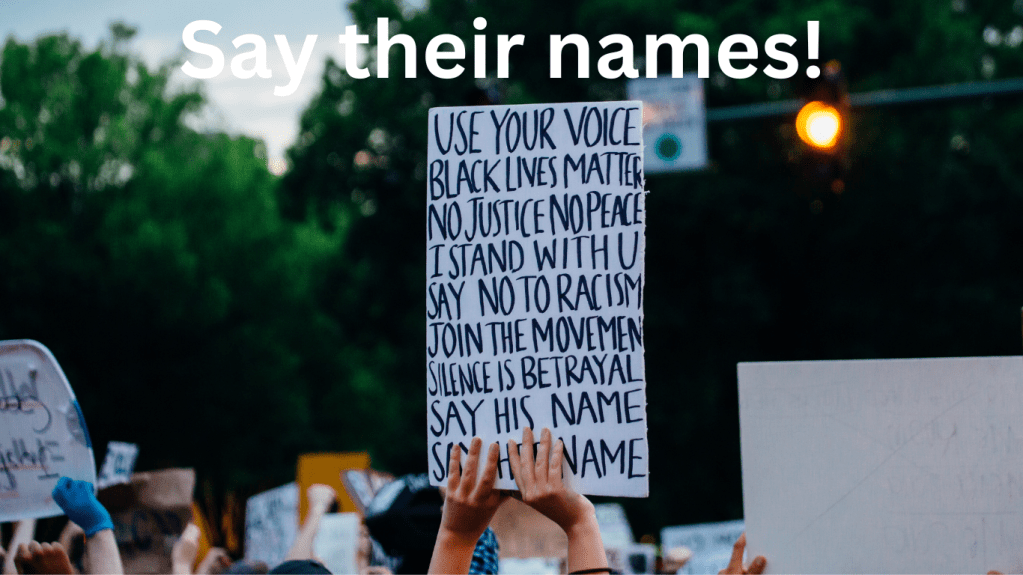 - Invite them to and repeat the names after you. See their faces…remember them. Their lives mattered.