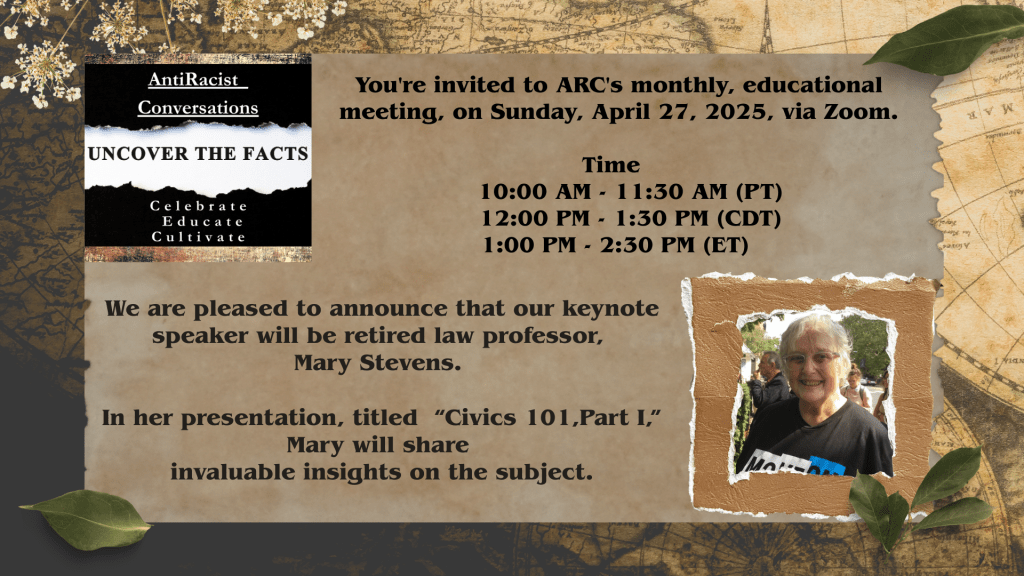 ARC(AntiRacist Conversations) Monthly Meeting.(Sunday, April 27, 2025…12:00 pm CT)